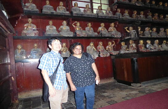 2024年8月25日(日) 学校主催の国際交流事業に参加した歴史の先生で、盛岡の歴史に関心があり、報恩寺、鉈屋町の町屋物語館、三石神社などを案内しました。We guided a teacher from Malaysia who was interested in history of Morioka.