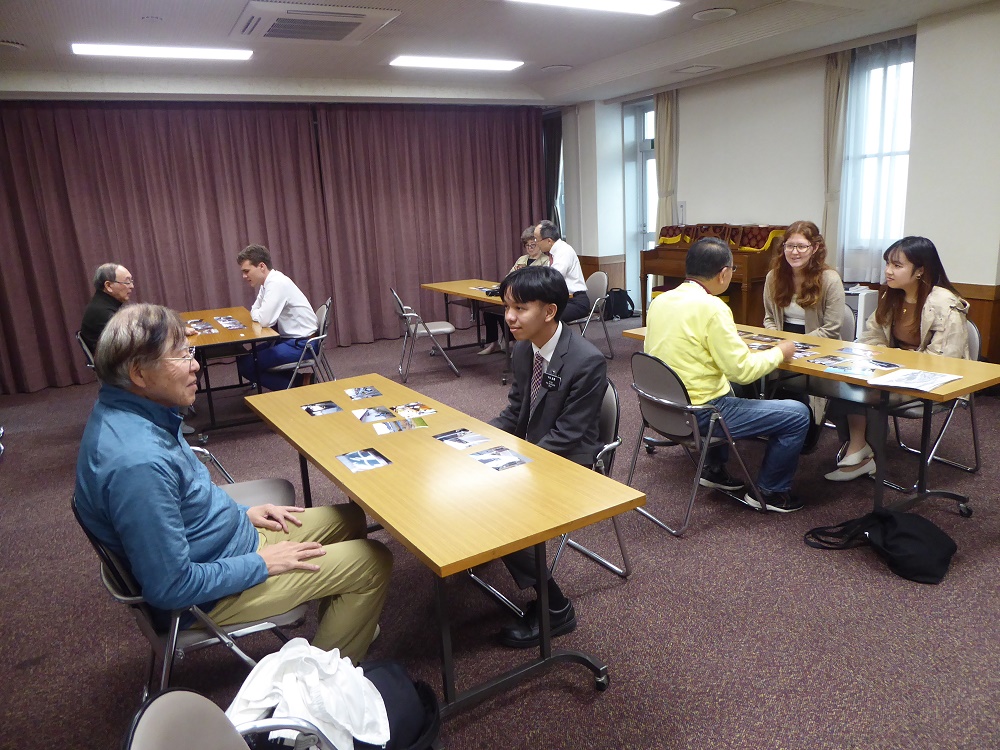 今回は、鉈屋町界隈の写真を見ながら、英語で説明し、質問を受けたりしました。 This time we prepared photos of tourism spots around Nataya-cho town and did demonstrative guiding.