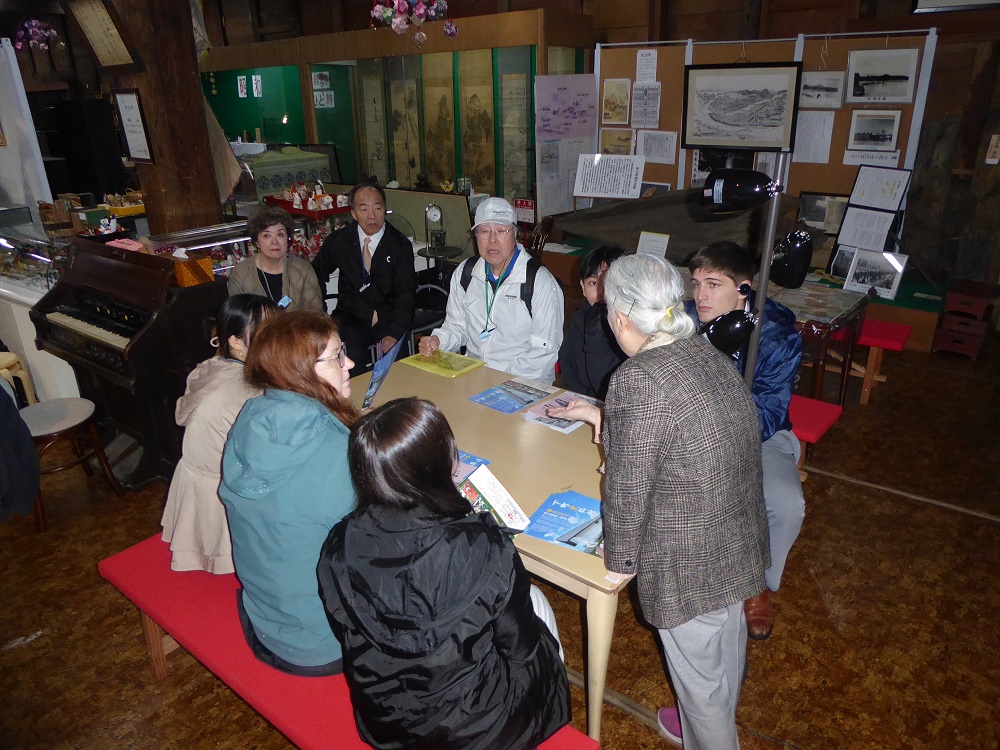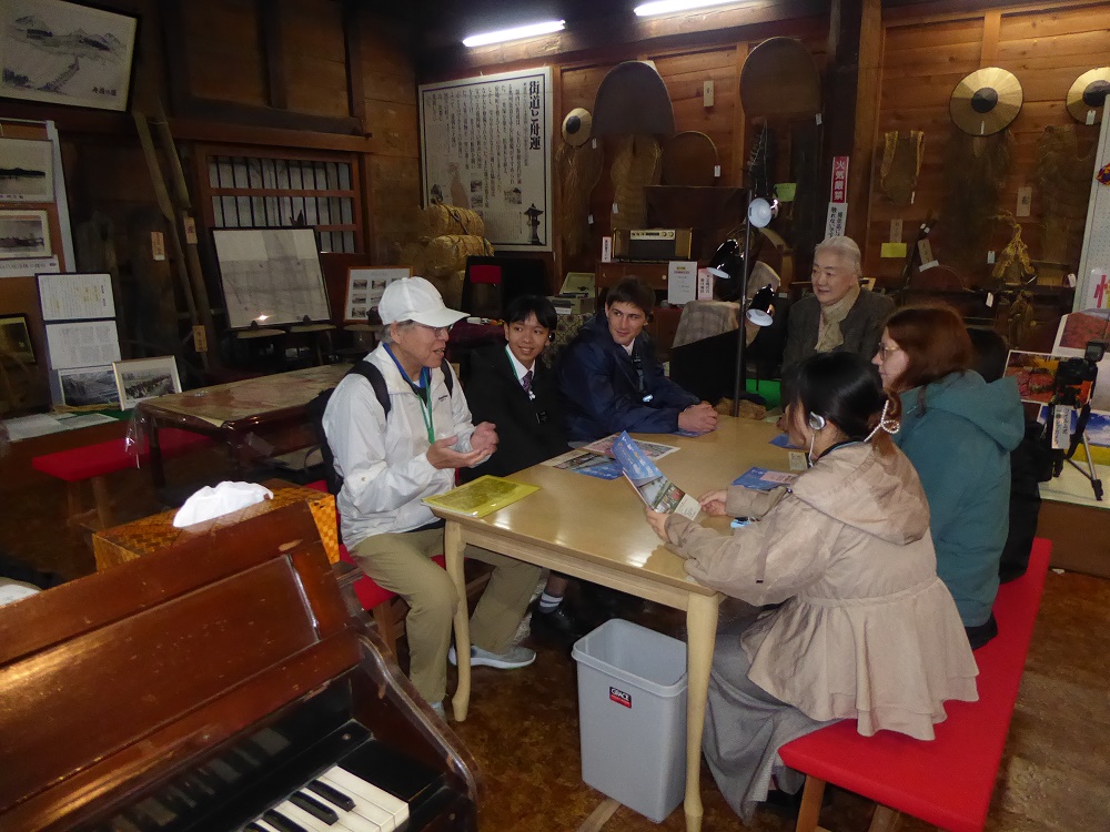 鉈屋町で、町家物語館、大慈清水、御蔵などで、一班で現地研修を行いました。 Group One studied in Nataya-cho area. Okura is a museum to exhibit things from the Edo Period to Showa. The representative of the neighborhood association, which has been maintaining the facility being asked by Morioka City, explained about its valuable things.
