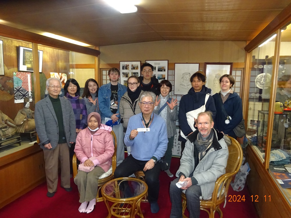 岩手大学の留学生に蛭子屋で、南部古代型染を紹介しました。(2024年12月11日(水))