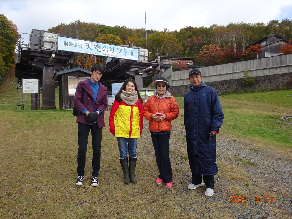 冬はスキーを楽しめる網張高原で紅葉と澄み切った青空を楽しみました。 We enjoyed the autumn leaves and clear sky in the Amihari Plateau where we can enjoy skiing.
