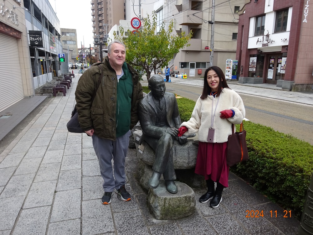 じゃじゃ麺を食べに来たアメリカのステイブンを市内ガイドしました。(2024年11月21日(木))