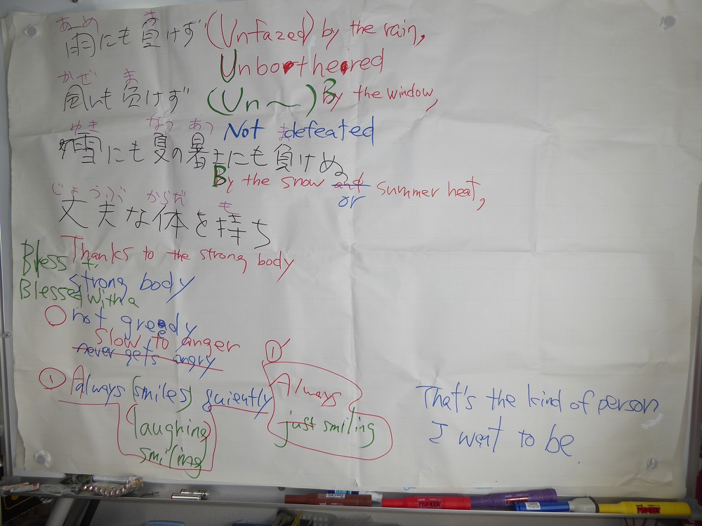 一班で雨ニモマケズなどの翻訳に挑戦しました(2024年12月15日(日))