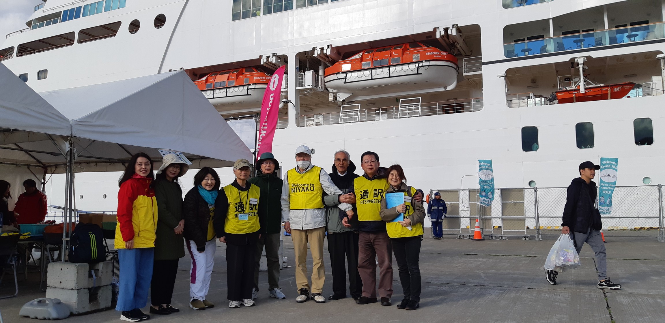 前日に引き続き宮古でのクルーズ船ガイドを9名で行いました。宮古西中学校とゲストの交流が行われ、教職経験者の当会の3名が通訳等の補助をしました。 Continuing from the previous day, 9 members guided for cruise ship. In interactive friendship program between students of Miyako nishi junior high school and cruise guests, 3 of our members who have experiences of teaching assisted interpretation and so on.