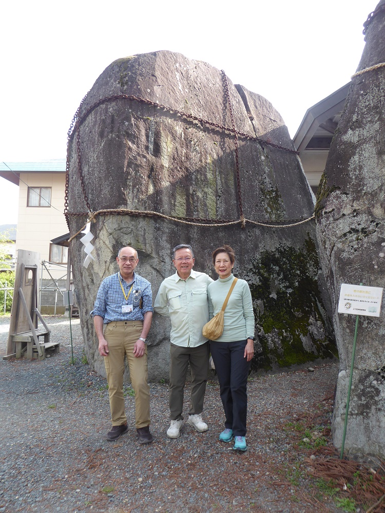 石割桜と盛岡城跡公園は、桜がちょうど満開、お二人は、桜をたくさんカメラに収め ていました。アイーナでの多読の会(英語の本を読む会)にも参加していただき、三石 神社では、くっきりした「鬼の手形」を見ました。We guided a couple from Singapore. Cherry trees were in full bloom on this day. Can you see a hand print of a demon, which is the origin of Iwa-te (Rock Hand) Prefecture?