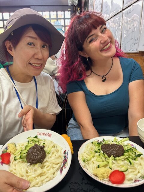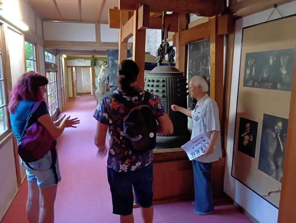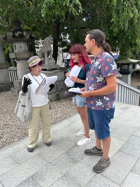 イタリアからのFederico さんとSilviaさんの観光ガイドを行いました。 盛岡城跡公園をはじめ、桜山神社、もりおか歴史文化館、報恩寺(五百羅漢) を散策及び観覧しました。 当初予定していた、三ツ石神社と石割桜は暑さ対策と時間の関係で報恩寺にて写真 を見せての説明となりました。 昼食は白龍本店でじゃじゃ麺を食べ、夕食はお二人でわんこそばに挑戦しました。 後日談として、わんこそばを食べた夕暮れに、鬼の手形を探しに三ツ石神社を訪れ 暗い中、石を踏む音に怖さを感じたとのことでした。 とても気さくな方々で、盛岡での最終日には一緒に飲もうとお誘いをいただき、皆で とても楽しいひと時を過ごしました。