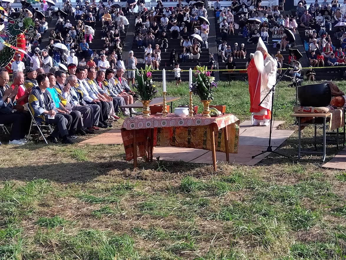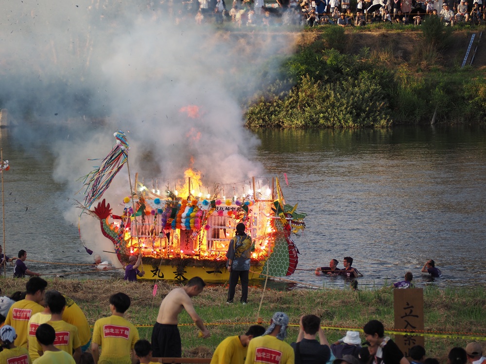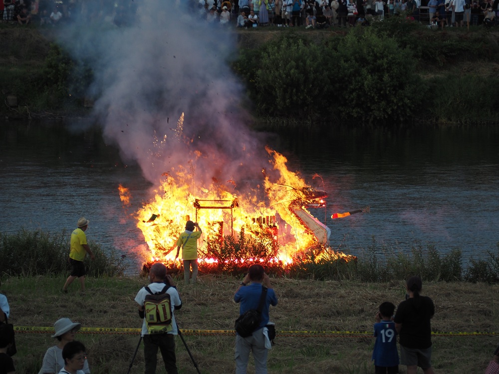 On August 16, 2025 We were in charge of narration for Funekko Nagashi. The Funekko Nagashi is one of the Okuribon events held annually in Morioka. During the boat floating ceremony, wooden boats shaped like dragons are burned to guide the spirits of ancestors to a peaceful place in the afterlife. This event has been designated as an Intangible Folk Cultural Asset of Morioka city.