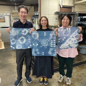 We guided Christina-san from Spain around Morioka! Our tour included the Shitamachi Shiryokan, Daiji-shimizu, the 16 Arhat Statues, the Hachimangu Shrine, and Morioka Tezukurimura etc. She even tried her hand at indigo dyeing and successfully made her own wonderful bandana!