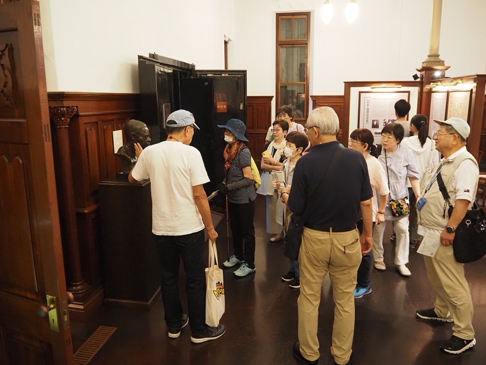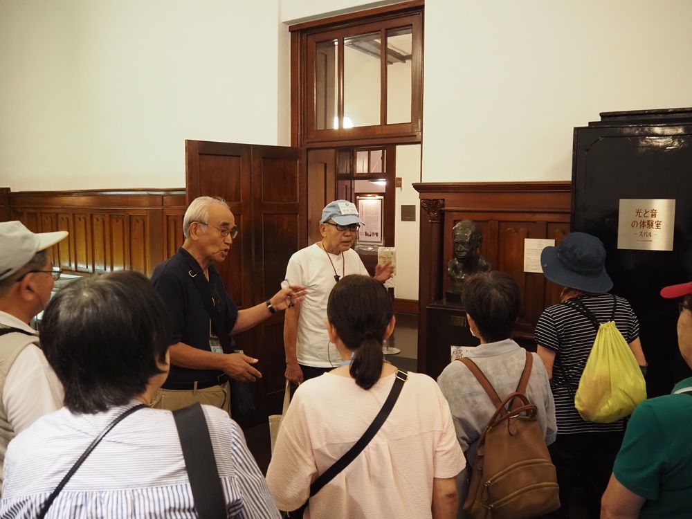 盛岡には日本語でガイドを行う観光ガイドの方々がいらっしゃり、我々も研修などで お世話になっていますが、コース設定などの関係でご依頼を受けた場合など、会員が 対応しています。この日は、もりおか啄木・賢治青春館、岩手銀行赤レンガ館、釜 定、ござ九、草紫堂、紺屋町番屋から対岸のビクトリアロード、もりおか歴史文化館 でビデオ鑑賞、太鼓橋から三の丸、二の丸、本丸のコース(盛岡城)、賢治清水から 材木町へ移動し、材木町イーハトーブ・アヴェニュー散策、石座と光原社というコー スでした。Two of our guide group guided Japanese travelers this time from Morioka Takuboku Kenji Adolescence Museum to Kogenshain Zaimoku-cho.