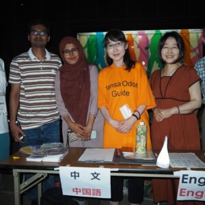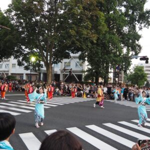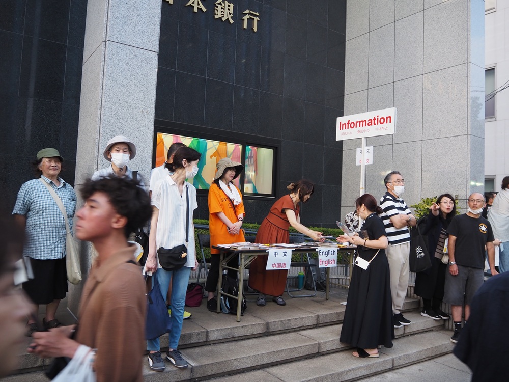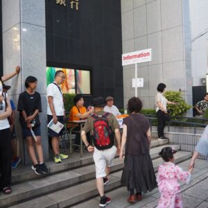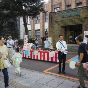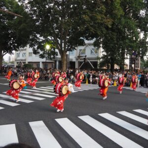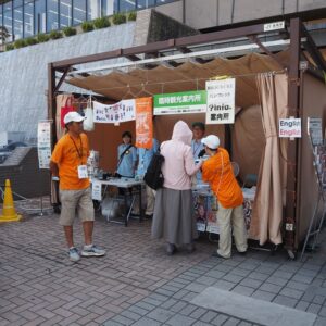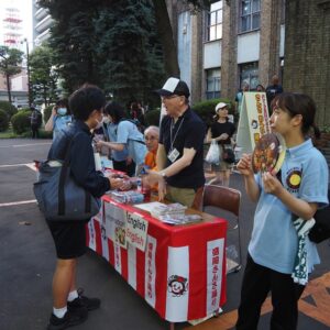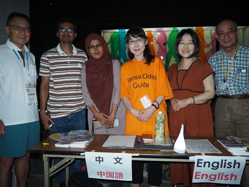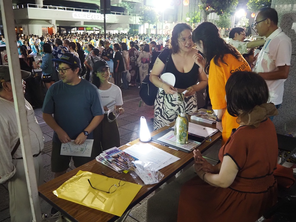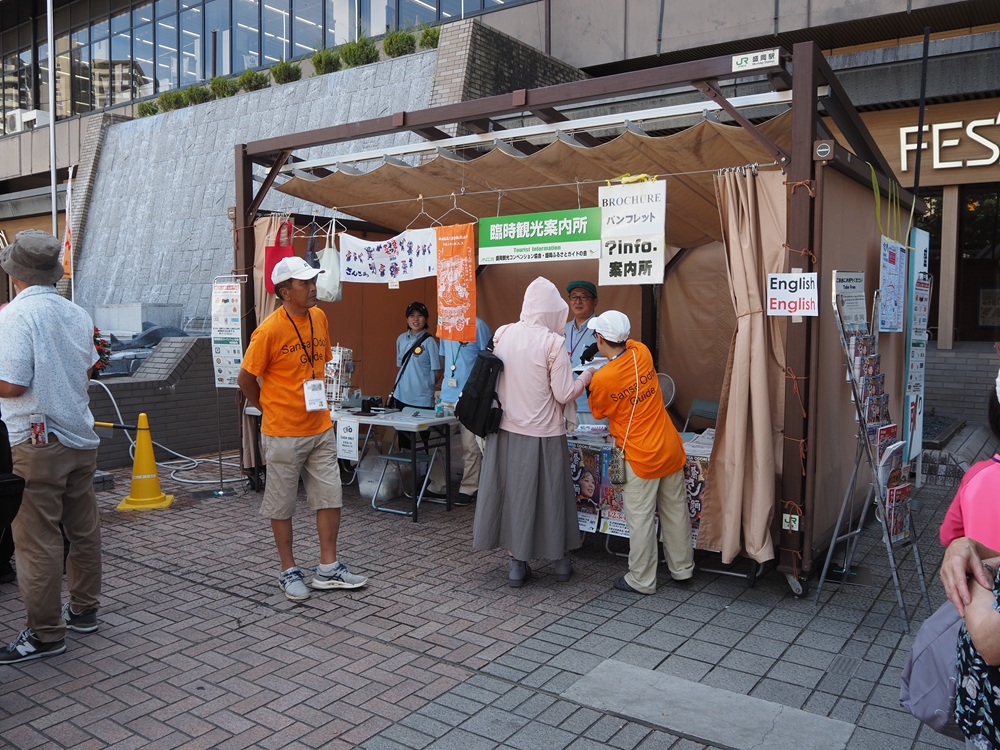 今年も実行委員会からの依頼で、盛岡駅前、北銀本店前、公会堂前の3カ所で、外国 人のお客様を中心に、さんさ踊りの会場やプログラムについて、またトイレや有料観 覧席の場所についての案内などを行いました。4日間延べで、駅前8名、北銀前16名、 公会堂前8名の会員が従事しました。 Sansa Dance Festival season has come. Our members worked at three information booths for mainly tourists from abroad.