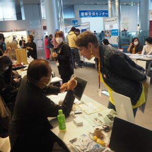 「ワン・ワールド・フェスタ in いわて」は、岩手県国際交流協会が主催し、毎年ア イーナで行われる、世界中の国々の人たちと各ブースで交流できるイベントです。関 係団体のブースの一つとして当会も出展し、いらしたお客様に当会の活動をPRしまし た。 ‘One World Festa in Iwate’is an annual big event organized by Iwate International Association. Through booths by countries all over the world customers enjoyed and interacted with them. We advertised our activities in our booth.
