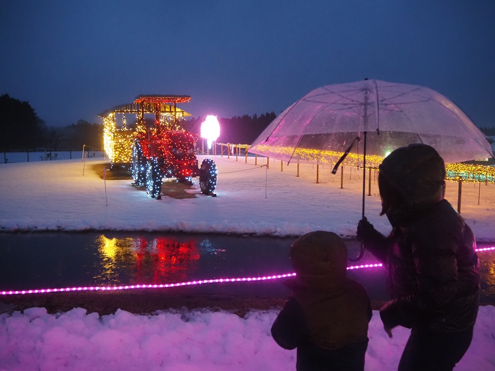 シンガポールからのご家族に旅行会社からのご依頼で盛岡手づくり村と小岩井農場イ ルミネーションを英語で案内しました。手づくり村では、染屋たきうらで藍染体験、 お子さんも含めエンジョイしたようです。小岩井農場では、イルミネーションを楽し みました。One of our members guided a family of 6 members from Singapore in English. They experienced indigo dyeing at Someya Takiura in Morioka Handicraft Village, then enjoyed seeing decorative illumination in Koiwai Farm.