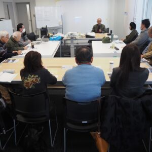 定例会で、三人の会員から、ガイドを行う上で心掛けていることや注意している点な どについて、三者三様のレクチャーがありました。その後ガイドの仕方などについ て、意見交換が行われました。In the regular meeting, our three members gave lectures about their own ways of how to guide.