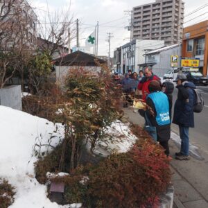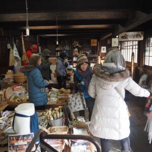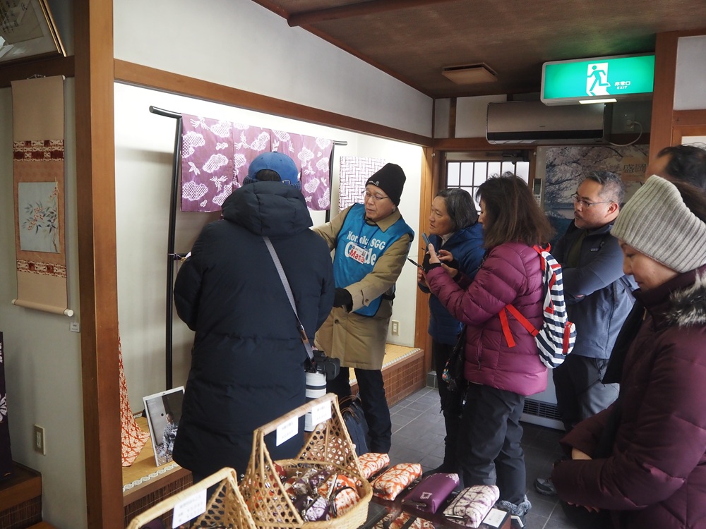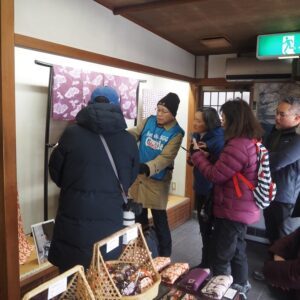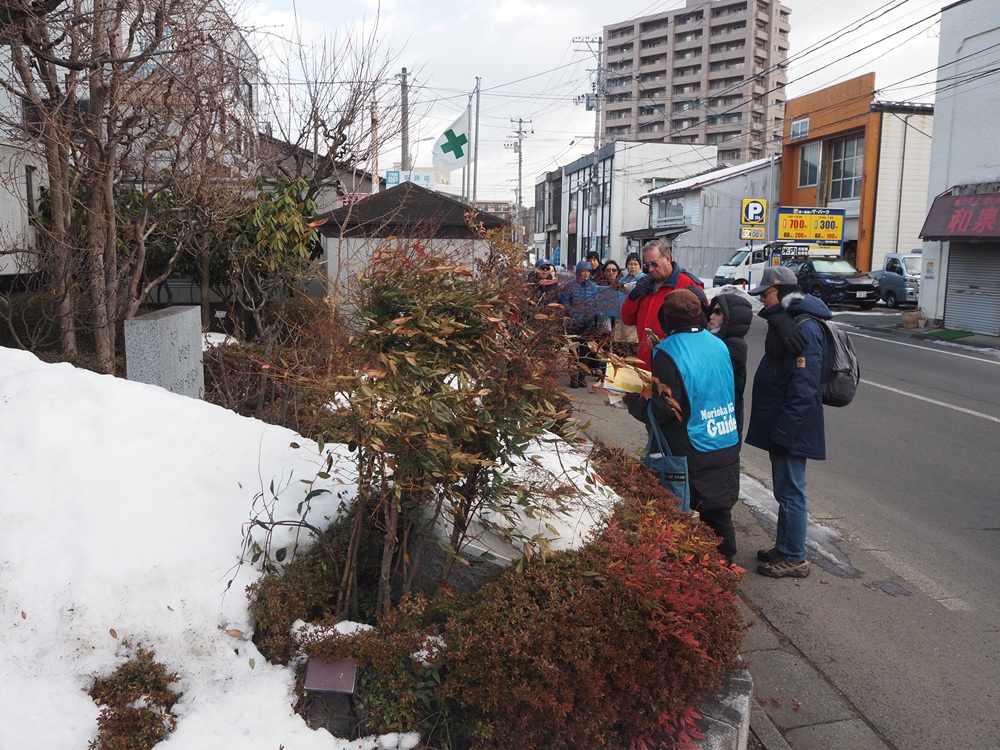 ロサンゼルスからお越しの日系アメリカ人14名の方に、会員3名で3グループに分かれ て、英語でガイドしました。バスで到着した皆さんを紺屋町界隈をガイド、新しい交 流型商業施設monaka(もなか)では、お弁当の購入もお手伝いしました。Three of our members guided 14 customers from U.S around Konya-cho and Sakana-cho.